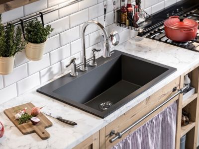 Composite sinks: As composite sinks are available in a number of colors and shapes, they may be your best option if you are looking for a sink that complements the design of your kitchen. They are mainly made up of quartz or granite along with a resin binder and hence are durable. Also, they are resistant to stains, do not leave any marks of water after use, and are scratch and heat-resistant.