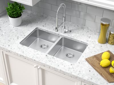 Double-bowl sinks: If you are a multitasker and like to separate out dishes while scrubbing and rinsing then double-bowl sinks are your best fit. They come with two bowls and provide separation for multitasking.