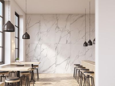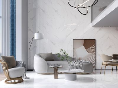 Porcelain slab tiles aren't just practical, they stand out in any room. Because they're so big and have such interesting patterns or textures, they become the main focus that makes regular rooms look amazing.