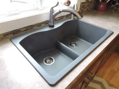 Composiet spoelbakken, vervaardigd uit een reeks materialen, versmelten tot de spoelbak die het is. Sommige materialen, zoals kwarts, graniet of acrylharsen, worden gemengd met acryl of polyester. Deze spoelbakken combineren de duurzaamheid en visuele aantrekkingskracht van natuursteen met de flexibiliteit van gegoten materialen.